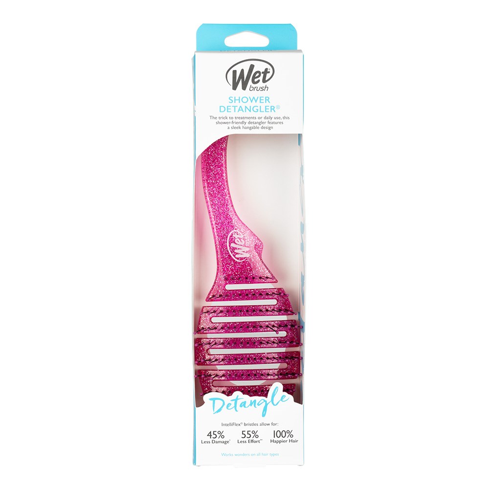 Looking for a hair brush that can multitask? The WetBrush Shower Detangler Hair Brush Pink Glitter is your answer! Not only does it gently detangle your hair, but it also evenly distributes conditioning treatments in the shower. With its cushion-free design, this brush is easy to clean and air dry. Plus, it comes with a convenient shower hook handle. The exclusive IntelliFlex bristles make detangling a breeze, gliding through tangles effortlessly. Upgrade your shower routine with this sparkling brush that knows how to multitask!