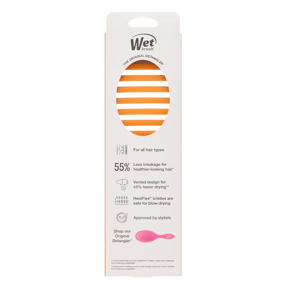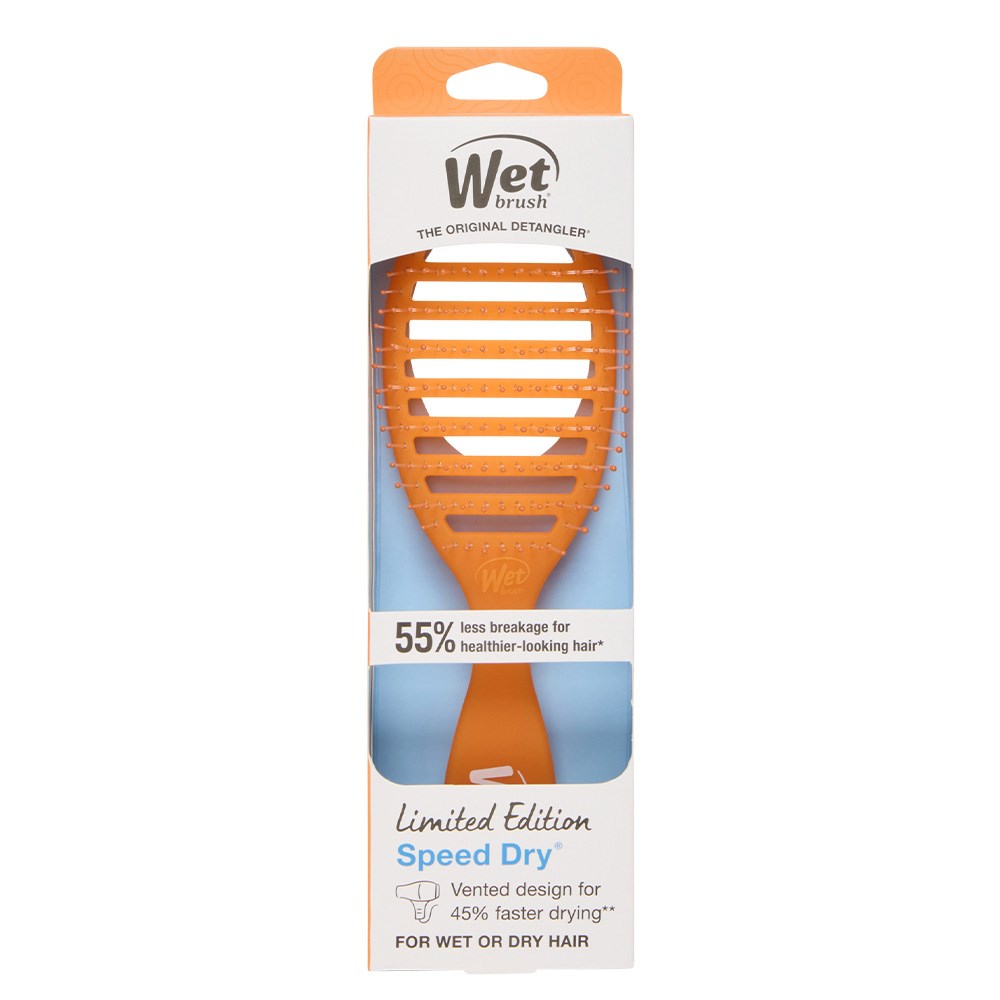 Meet the WetBrush Summer Quenchers Speed Dry Orange. Dry hair without drying it out. The Speed Dry’s vented design speeds up drying time by allowing moisture to escape faster. Heat-resistant HeatFlex bristles gently detangle while blow-drying. Skip the extra heat and avoid damage, helping to keep hair happier. Brush design contours to scalp for extra comfort. Limited edition.