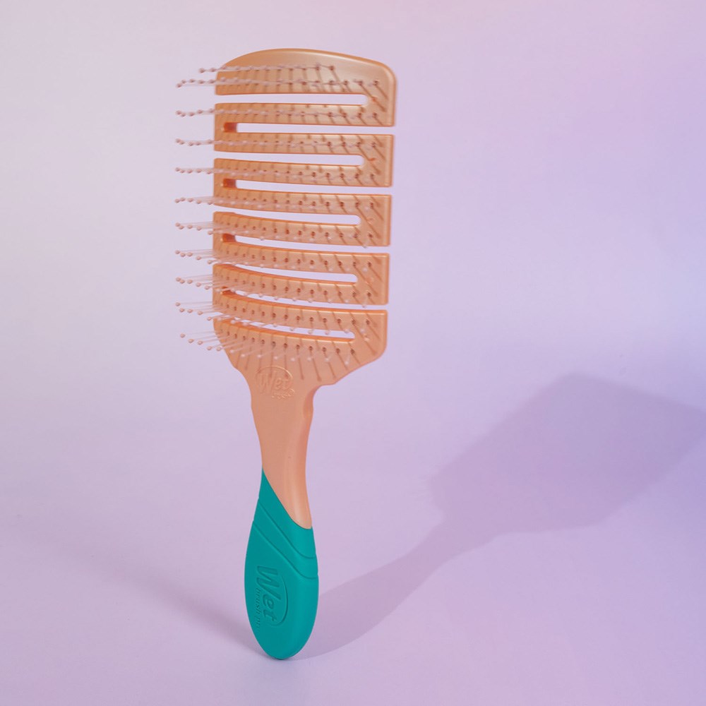 Stylists’ fave way to faster hair drying. WetBrush Pro Artful Ace Flex Dry Paddle Detangler Flag Up features a flexible vented paddle design to speed up dry time while contouring to the scalp for comfort. Wet Brush HeatFlex bristles are heat resistant and safe to use with a blow-dryer. OmniFlex brush head flexes in every direction to contour to scalp. This hair brush has a 20% larger surface area for faster styling. Limited edition design in Flag Up.