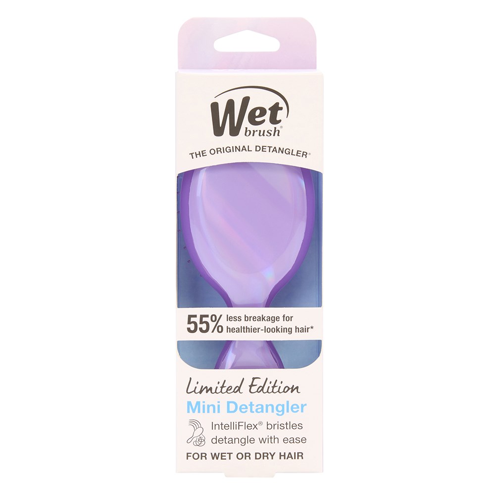 A bold fusion of shimmery textures, dreamy pastels and modern aesthetics. WetBrush Prismatic Glow Mini Detangler Purple features a stunning holographic finish for those who dare to shine while detangling on-the-go.