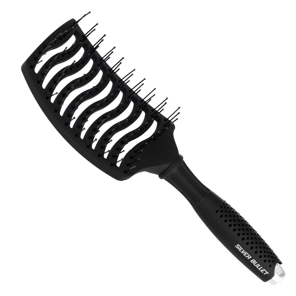 Want to style hair as smooth and soft as velvet? Silver Bullet Black Velvet Curved Vent Hair Paddle Brush is ideal for detangling, smoothing and drying. The vented design speeds up blow-drying to boost your efficiency, while the curved head contours to your scalp for superior comfort. The durable nylon bristles give you salon quality results every time.