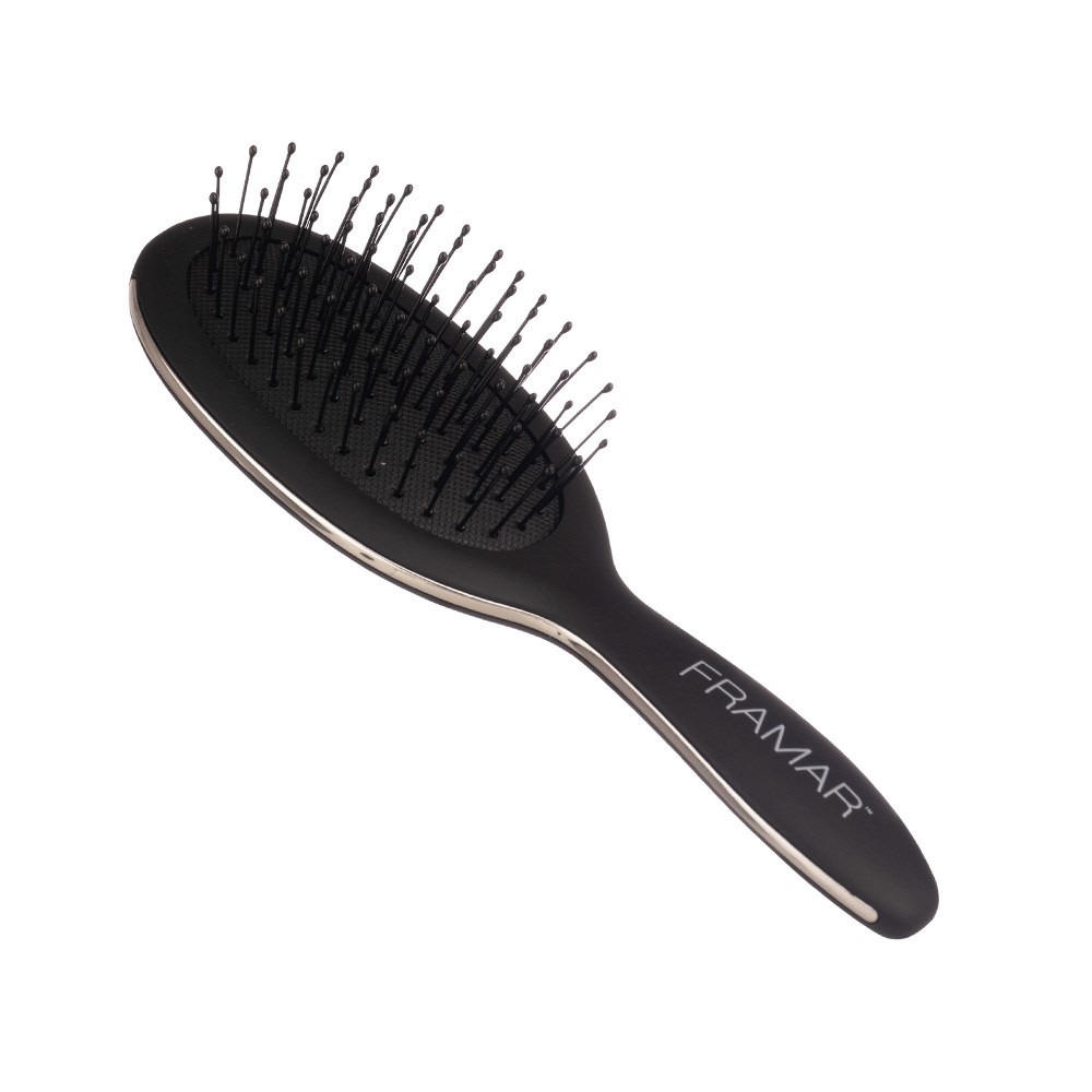 Major results in a pint-sized package. Designed for on-the-go styling, Framar Mini Detangle Hair Brush Black effortlessly glides through knots and tangles. Hair is left smooth, shiny and breakage-free. Fits in your purse, gym bag or carry-on - a must for busy lifestyles! Ideal for all hair types, including wigs and extensions.