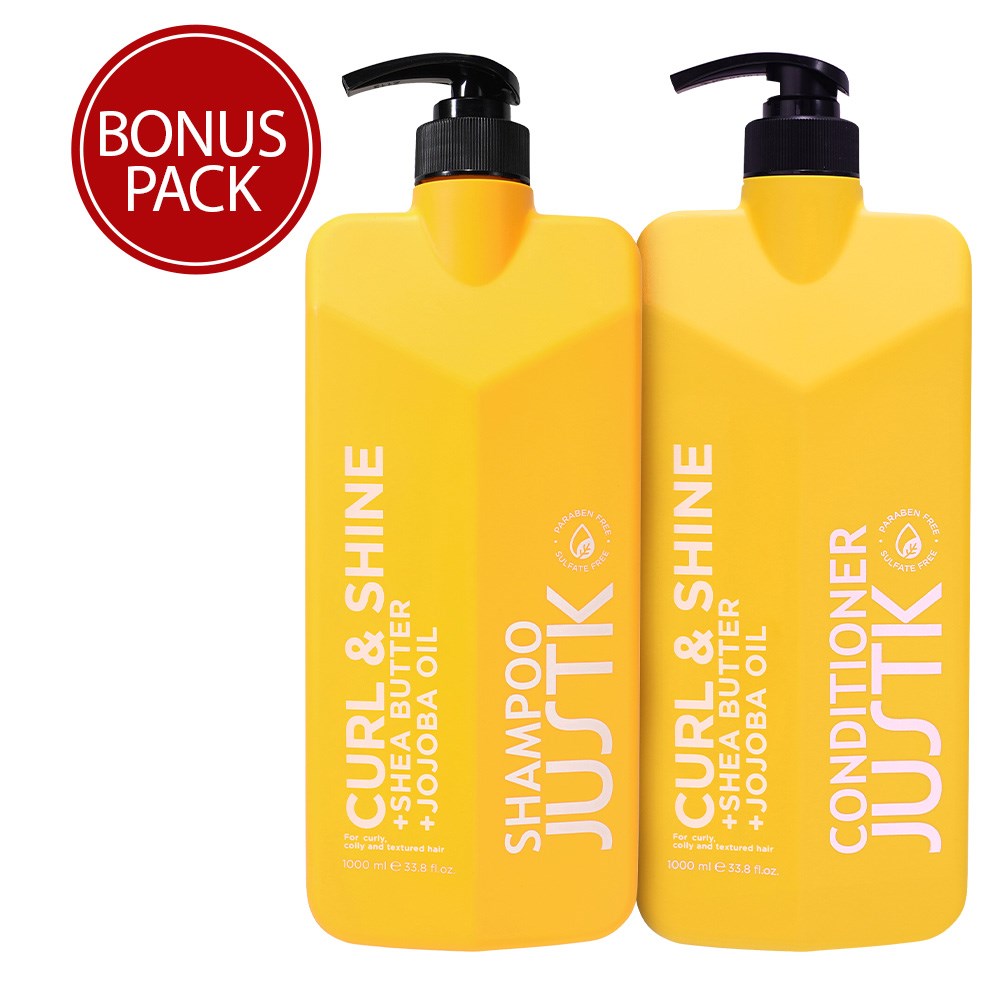From whoa to wow, one wash at a time! Salon-proven formulas which solve all the problems of the hair rainbow. JustK Curl & Shine Duo 1L delivers shiny, happy curls with bounce. Infused with shea butter and jojoba oil to revive and hydrate parched curls. Beautiful curls become affordable!