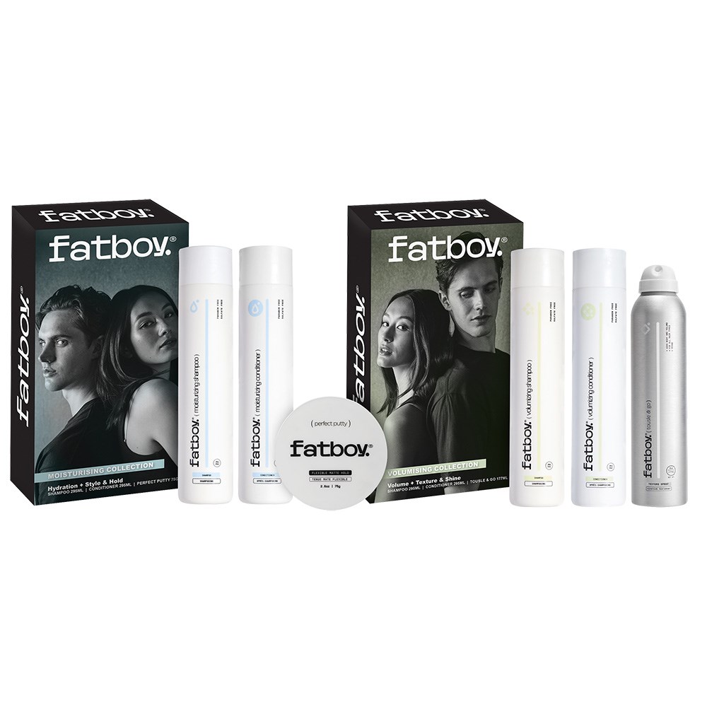 Fatboy Moisturising Shampoo is infused with quinoa oil, coconut oil and avocado oil to hydrate and nourish. Hair shines with every use. Fatboy Moisturising Conditioner is enriched with rice protein to strengthen hair by rebuilding, nourishing and hydrating. Fatboy Perfect Putty is the OG product for matte texture and volume on all hair types.