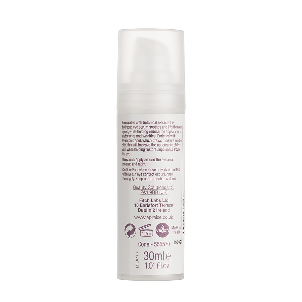 Boosted by botanical extracts, Apraise Eye Serum is a hydrating eye serum which helps soothe the skin of the upper eyelid, while reducing the appearance of dark circles and wrinkles. Infused with hyaluronic acid to attract moisture, this serum will improve the appearance of dry skin while restoring suppleness around the eye area. Suitable for sensitive eyes.