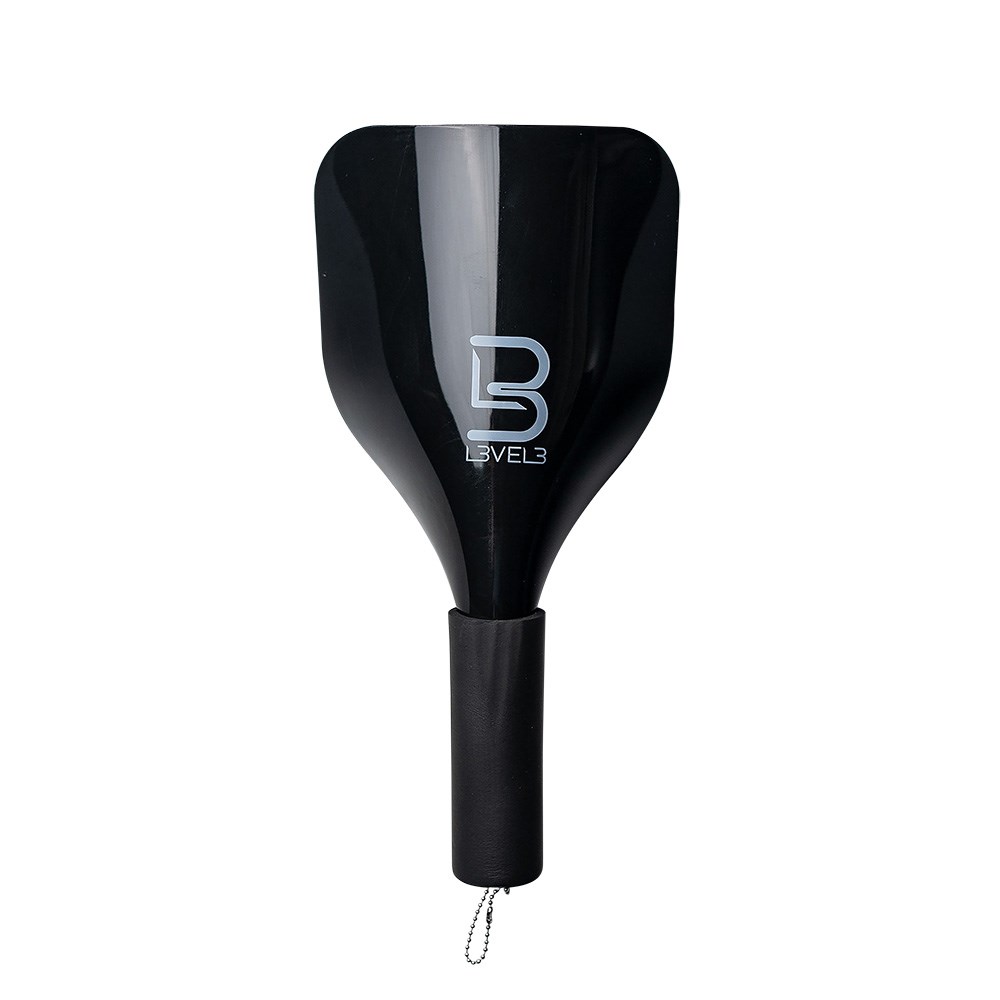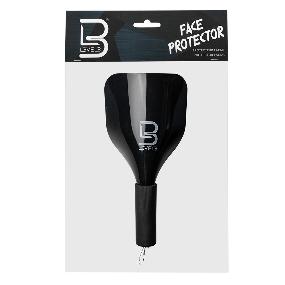 Protect your face with this simple yet effective hairspray face shield. Simply hold the L3VEL3 Face Protector and shield your face as you lock your style in place with hairspray. The handle is made from soft, cushiony foam for a comfortable grip. Sleek and stylish in black and white branding. Slimline design for easy storage.