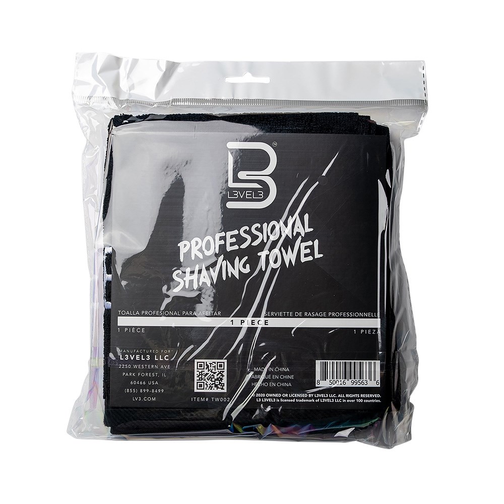 Amazingly soft, bleach-proof and chemical resistant barber towel. L3VEL3 Professional Shaving Towel Black is made from 100% cotton and meets all your shaving, hair and facial needs. Constructed with longevity in mind, this towel works hard at absorbing moisture while maintaining a luxurious feel.