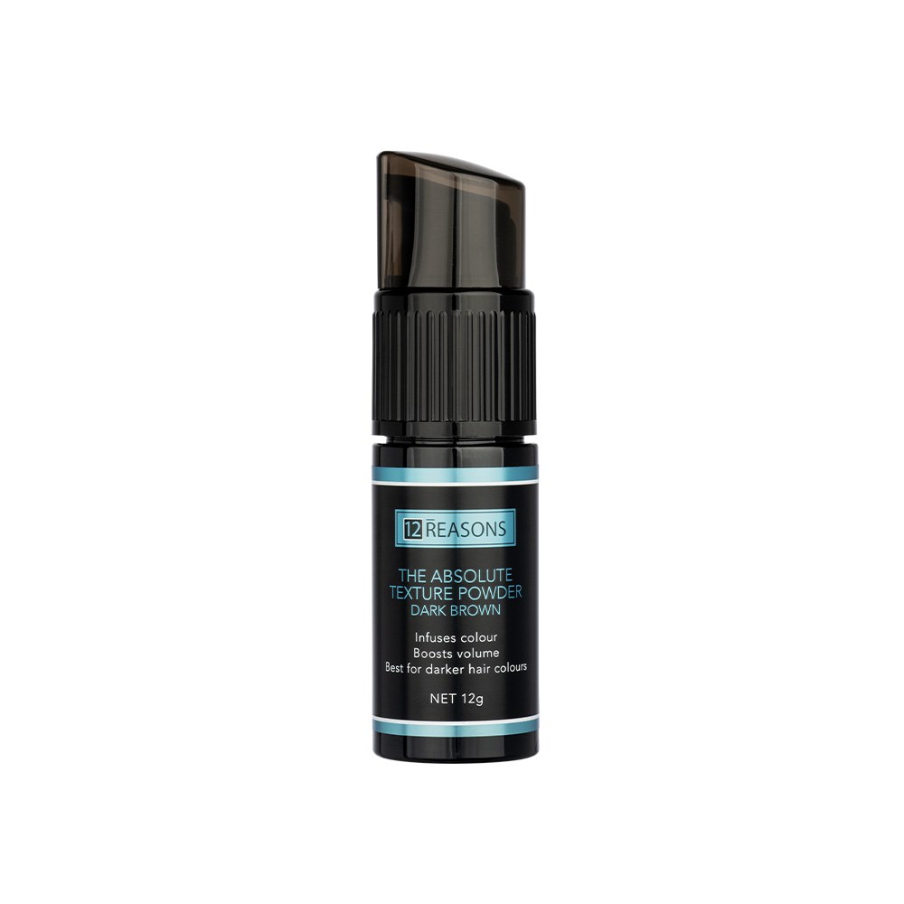 This is 12Reasons The Absolute Texture Powder Dark Brown. Instantly transform flat, limp hair with volume and texture. Best for brunettes and darker hair colours, this precision powder sprays without fuss to deliver lasting volume without weighing your hair down. All-day hold without stiffness. 100% vegan and never tested on animals, this powder is everything you need for easy texture and volume in mere moments. Designed and formulated in Australia.