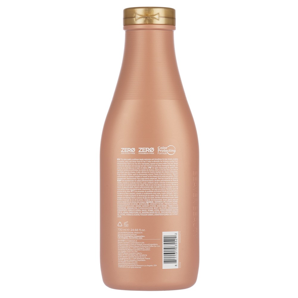 To Use: After shampooing with Beaver Brazilian Keratin Smoothing Shampoo, squeeze out excess water from hair. Spread Beaver Brazilian Keratin Smoothing Conditioner evenly onto damp hair and massage into hair from root to end. Rinse thoroughly.
