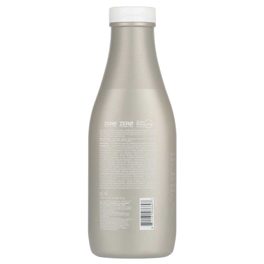 Help transform fine, flat locks into volumised, thicker-looking hair. Beaver Biotin and Caffeine Thickening Shampoo 730ml strengthens and fortifies while boosting the appearance of thickness. Enriched with biotin and caffeine, hair is left nourished and more resilient. Gently cleanses while promoting volume and helping to prevent breakage. Free from sulphates and parabens. Colour-protective formula.