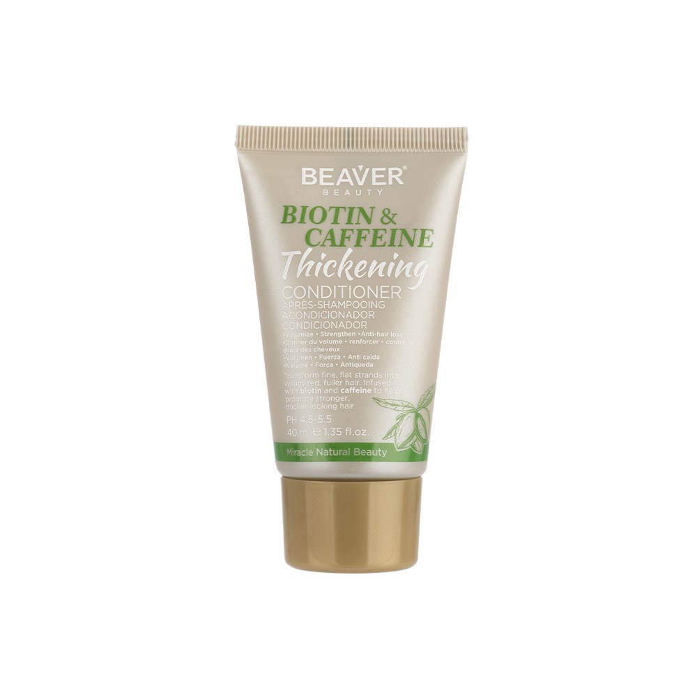 Help transform fine, flat locks into volumised, thicker-looking hair. Beaver Biotin and Caffeine Thickening Conditioner 40ml strengthens and fortifies while boosting the appearance of thickness. Enriched with biotin and caffeine, hair is left nourished and more resilient. Detangles while promoting volume and helping to prevent breakage. Free from sulphates and parabens. Colour-protective formula.
