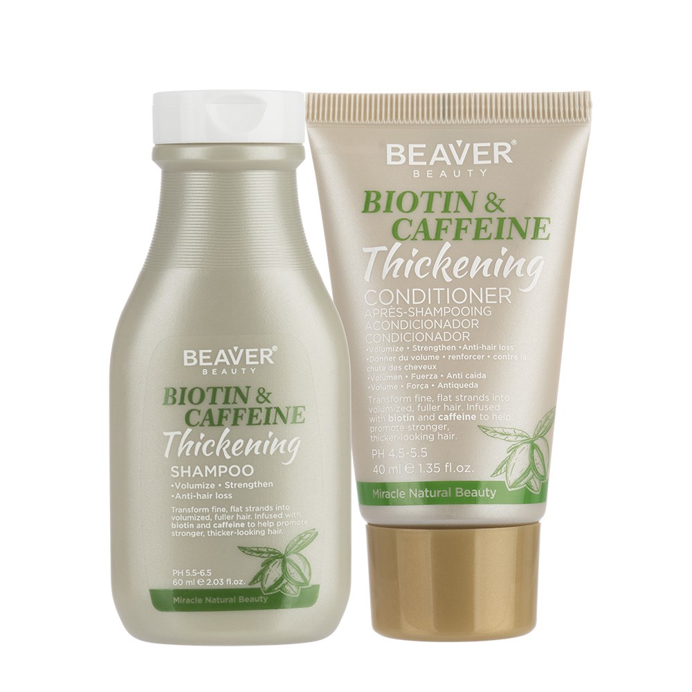 To Use: After shampooing with Beaver Biotin and Caffeine Thickening Shampoo, apply Beaver Biotin and Caffeine Thickening Conditioner generously to hair, working through to ends. Wait 3 - 5 minutes. Rinse thoroughly.