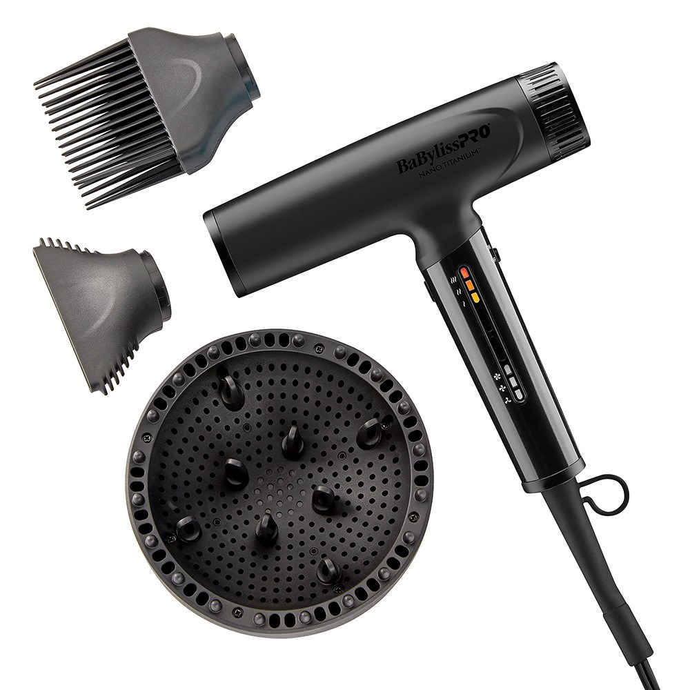 Here’s proof that good things truly do come in small packages! BaBylissPRO Nano Titanium Light Iconic Hair Dryer Black is compact, ultra-lightweight and high speed. Engineered airflow for faster drying. Ideally balanced T-shaped design weighs less than 453g and is almost the size of your smartphone. 1,400 watts of power melds with 9 digital heat/speed settings for versatility. Nano Titanium and ionic technologies for optimal smoothness and shine. Dual voltage for worldwide usage - take this hair dryer anywhere! Three innovative attachments meet every styling demand: cool-to-touch concentrator nozzle with air gaps for faster cooling, contoured diffuser and straightening comb with curved teeth for superior tension during styling.