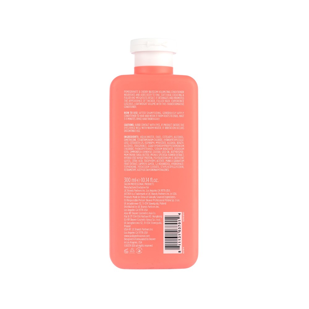JustK is just results. From whoa to wow, one wash at a time. Salon-proven formulas which solve all the problems of the hair rainbow. Choose JustK Volumising Conditioner for instant bounce and weightlessness. Infused with pomegranate and cherry blossom, this sulphate-free, paraben-free conditioner for fine hair creates the appearance of thicker, fuller hair. Detangle and nourish from root to tip while promoting a lifted, airy look. Beautiful volume becomes affordable!